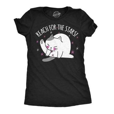 Womens Funny T Shirts Reach For The Stars Sarcastic Cat Joke Tee For Ladies - Crazy Dog Women's T Shirt For Cat Lovers