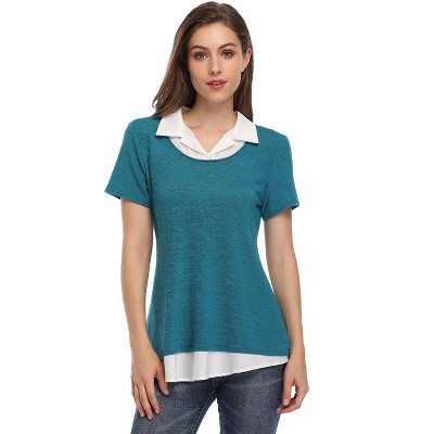 BLUEMING Women's Polo Shirts Lapel Collar V Neck Short Sleeve Blouse Dressy Casual Tunic Tops
