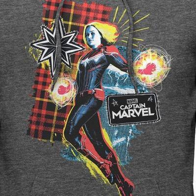 Men's Marvel Captain Marvel Flannel Patch Print Pull Over Hoodie