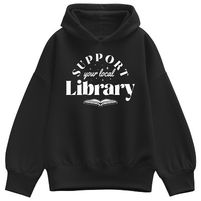 Women's Instant Message Support Your Local Library Oversized Fleece Hoodie Sweatshirt - Black - Small