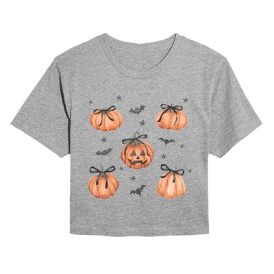 Women's - Instant Message - Pumpkin Bows Halloween Cropped Graphic T-Shirt