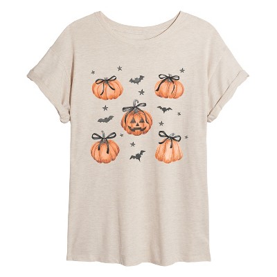 Women's - Instant Message - Pumpkin Bows Halloween Oversized Graphic T-Shirt