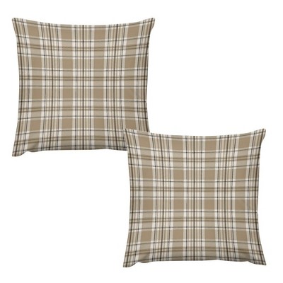 Lomsoe Fall Set of 2 Scottish Tartan Plaid Throw Pillow Covers Farmhouse Classic Khaki and White