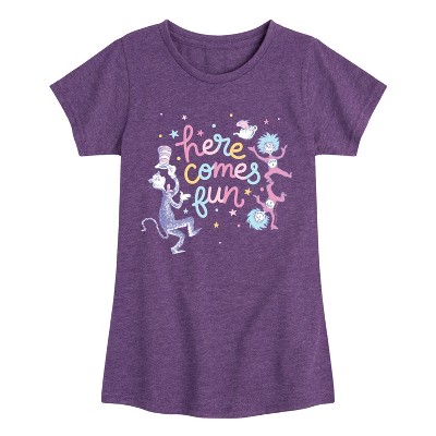Girls' - The Cat in the Hat - Here Comes Fun Fitted Short Sleeve Graphic T-Shirt
