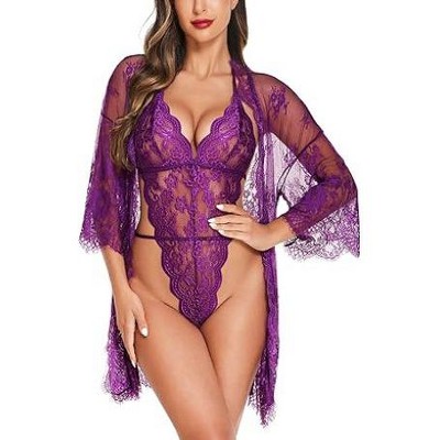 Avidlove Women Lingerie Set 2 Piece Lace Robe with Lace Teddy Lingerie Bodysuit