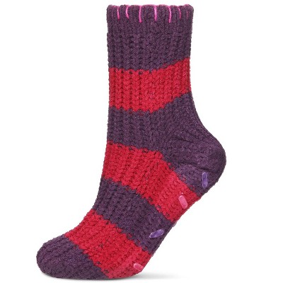 Memoi Women's Wide Stripe Chenille Non-Skid Slipper Crew Sock