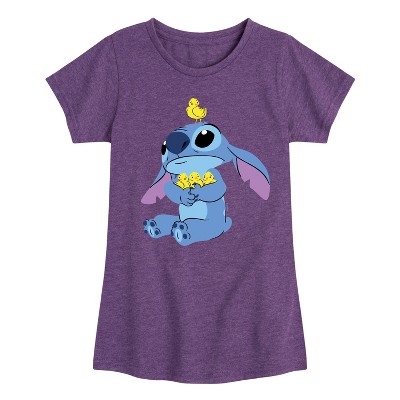 Girls' - Lilo & Stitch - Stitch And Chicks Fitted Short Sleeve Graphic T-Shirt
