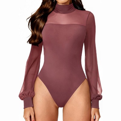 Avidlove Long Sleeve Body Suits Women's Mesh Turtleneck Bodysuit Thong Dressy Going Out Bodysuits Top Fall Outfits