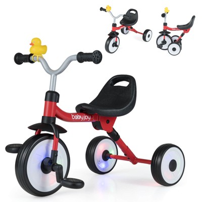 Babyjoy 3-in-1 Kids Tricycle with Lighted Wheels Folding Toddler Trike with Adjustable Seat Blue/Green/Pink/Red