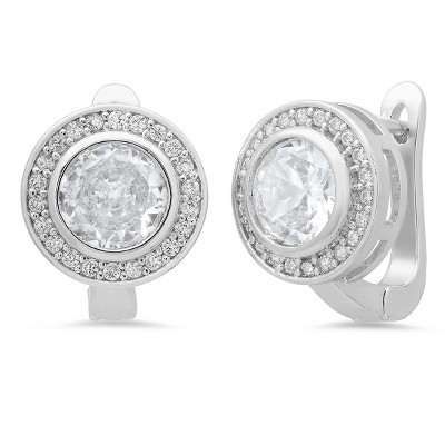 Steeltime Ladies 18k gold plated brass and simulated diamond round lever back earrings