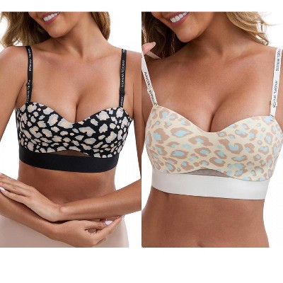 INSPIRE CHIC Women's Strapless Non Slip Wirefree Tube Sweetheart Neck Push-Up Cute Padded Convertible Bandeau Bras 2 Packs