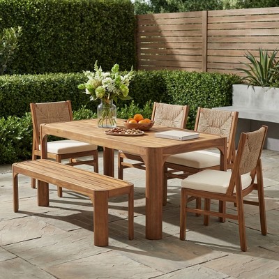 Christopher Knight Home Lan Modern 6 Piece Acacia Wood Patio Dining Set with Slatted Table and Rope Design
