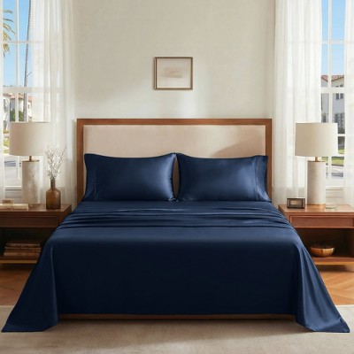 Deconovo Bamboo Viscose Satin Sheet Set, Breathable Cooling Bedding with Fitted Sheet and Pillowcases