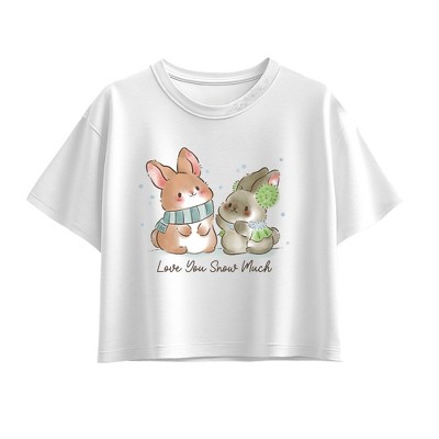 Girls' - Instant Message - Love You Snow Much Bunnies Short Sleeve Boxy Graphic T-Shirt