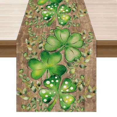 Wood Grain Green Shamrocks Clovers Eucalyptus Leaves St. Patrick's Day Table Runner
