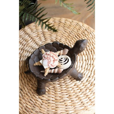 Cast Iron Turtle Dish 8.5"H – Brown Matte Decorative Trinket Holder (Set of 2) By Kalalou