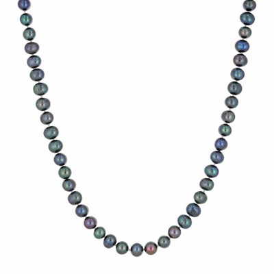 Lavari Jewelers Women's Sterling Silver 6-7MM Freshwater Black Pearl Necklace