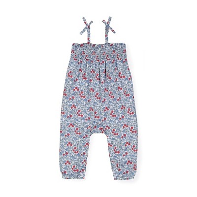 Hope & Henry Baby Smocked Romper with Bow Shoulders (Red and Blue Ditsy Floral, 0-3 Months)