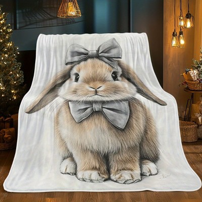 Lomsoe Easter Patterned Blanket 1pc Bunny with bow Blanket-Lightweight Home Furnishings Bedding Blanket Decorative Throw.