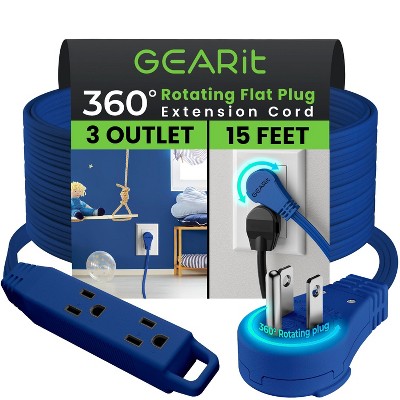 GEARit 360° Rotating Flat Plug Multi-Outlet Extension Cord - Green / 2 Feet