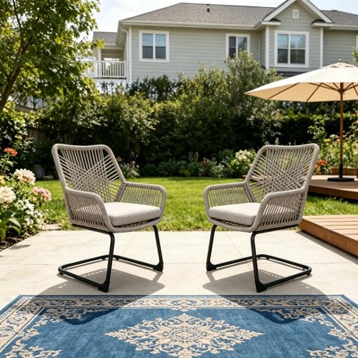 GDFStudio Ivo Modern Iron and PE Rattan Outdoor Armchair with Spring Support and Cushion (Set of 2)