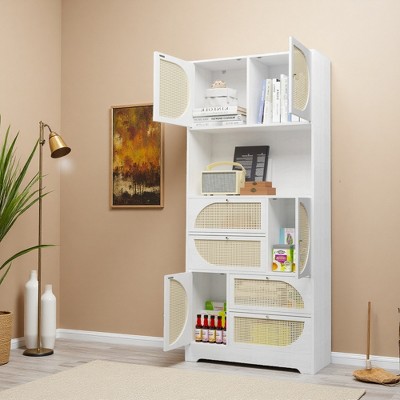 COUCHETA Multi-Purpose Arched Storage Cabinet with Rattan Doors, Adjustable Shelf & Anti-Tip, 31.5W x 15.7 x 47.8, Natural
