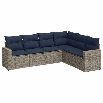 vidaXL Patio Lounge Set Set of 6 Grey PE Rattan Adjustable Armrests