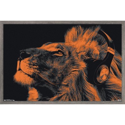 Trends International Lion With Headphones Framed Wall Poster Prints