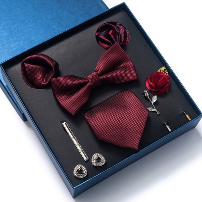 Alilang Men's Micro Grid Pattern Bow Tie Gift Set Pre-Tied Bowtie Pocket Square Cufflinks Tie Clip Formal Accessory Set