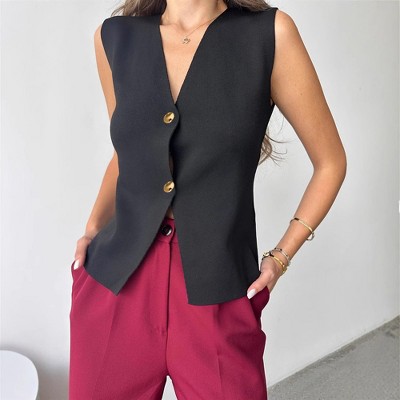- womens sleeveless button front waistcoat
