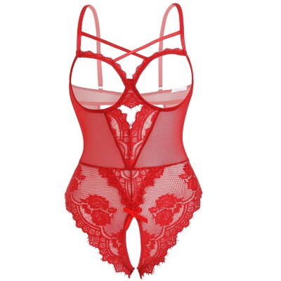Avidlove Women's Lingerie One Piece Bodysuit Floral Lace Teddy Mini Babydoll True Red L