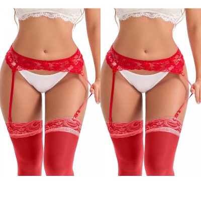 INSPIRE CHIC Women's Hollow Lace Adjustable Strap Lightweight Garter Belts with Four Clips Stockings Suspender 2 Packs