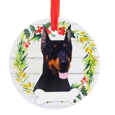 E & S Imports 3.5 Inch Ceramic Doberman Ornament Christmas Tree Ornament , Dog Puppy Ribbon Cherish Pet (1PC)