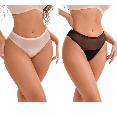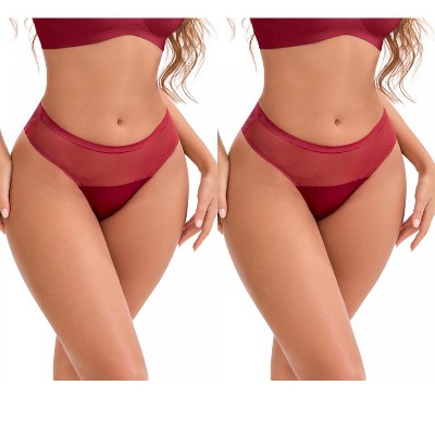 INSPIRE CHIC Women's Lace Mesh See Through Mid Rise Breathable Lightweight Seamless Briefs 2 Packs