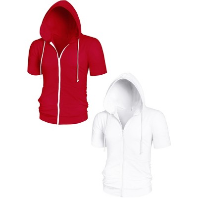 Lars Amadeus Men's Solid Color Zip Up Short Sleeves Sweatshirt with Drawstring Hood 2 Packs