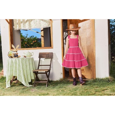 Arshiner Girls Summer Sleeveless Bow-Tie Straps Sundress Flowy Smocked Backless Tiered Lace Swing Midi Dress with Pockets