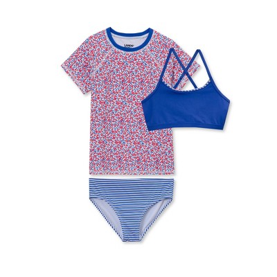 Lands' End Kids Chlorine Resistant Short Sleeve Rash Guard Swim Top and Bikini Set
