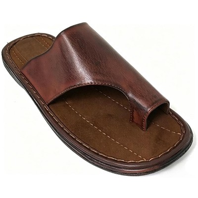 Mens Slides Sandals Brown Closed Toe Hook and Loop Fisherman Slipper