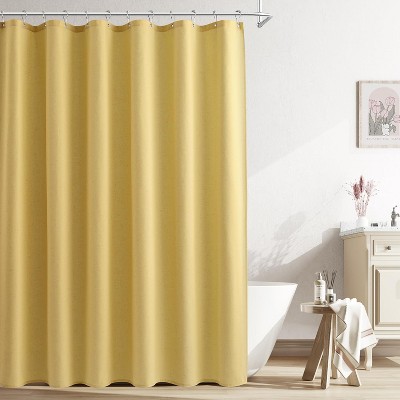 Yellow Linen Textured Shower Curtain, Modern Farmhouse Boho Bathroom Curtain 72x72 with Hooks
