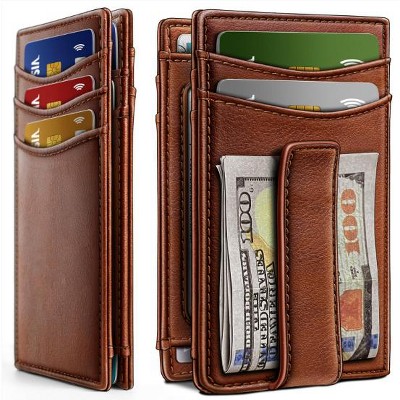 Narwey Cash Clip Slim Leather Wallet for Men with RFID Blocking & Money Clip