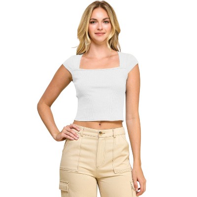 Women's Ribbed Square-Neck Tank Flattering Seam Details, Sleek Casual Fit Cherie Code