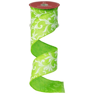 Northlight Green with White Floral Design Wired Craft Ribbon 2.5" x 10 Yards