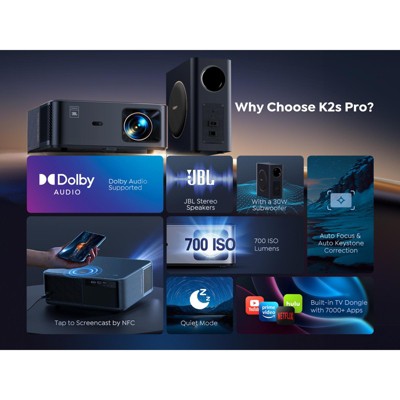 YABER K2s Pro 700 ISO Smart Projector with Subwoofer WiFi 6 Bluetooth, 4K Support, DoIby Audio,Netflix-Licensed, Sound by JBL