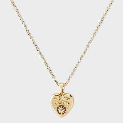 14k Gold Dipped Cubic Zirconia "U R My Lucky Star" Heart Twist Chain Necklace - A New Day™ Gold