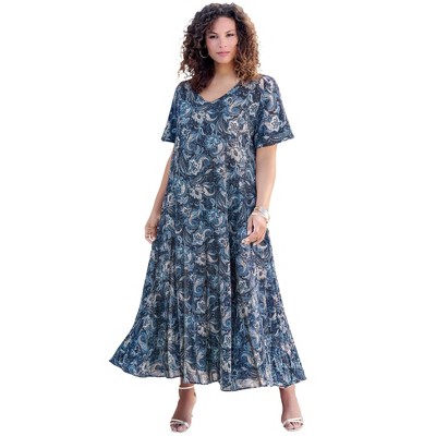 Roaman's Plus Size Hand Crinkled Flutter-Sleeve Maxi Dress