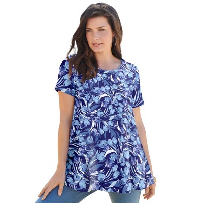Roaman's Plus Size Soft Knit Print Tunic With Notch Neckline