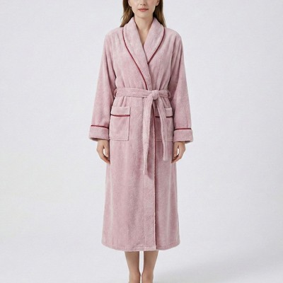 Anna-Kaci Lounge Plush Long Sleeve Shawl Collar Bathrobe with Contrast Trim and Adjustable Waist Tie Belt