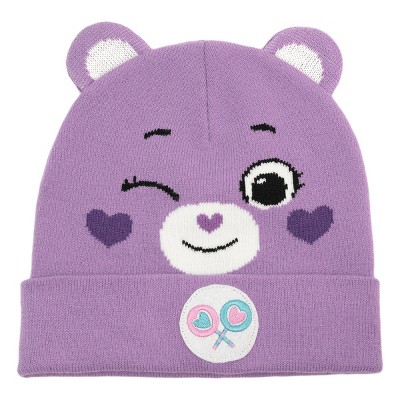 Care Bears Share Bear Face Knit Beanie with Ears for Men and Women, Lavendar
