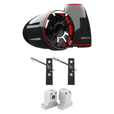 Wet Sounds REV 12 HD 12" Horn Loaded Compression Driver Tower Speakers with XW Grills & Stainless Swivel Base Mount, 400 Watts RMS, Black, Pair wit...
