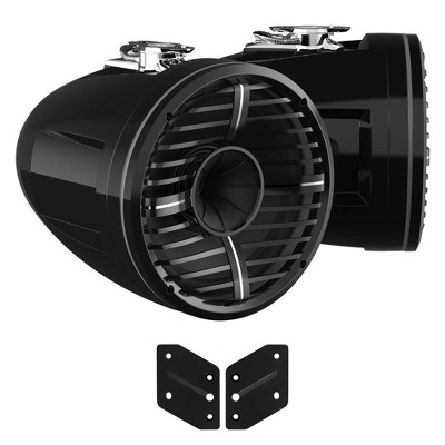 Wet Sounds REV 12 HD 12" Horn Loaded Compression Driver Tower Speakers with XZ Grills & Stainless Swivel Base Mount, 400 Watts RMS, Black, Pair wit...